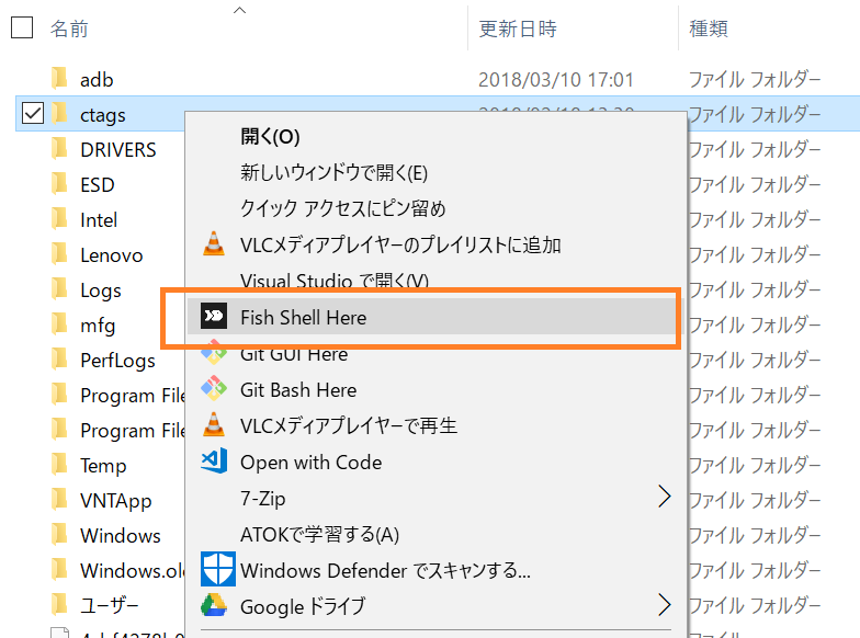 #Fish shellをExplorerの右クリックメニューに登録する。